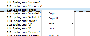 Faire un clic droit sur la liste des erreurs, copy all, et copier ça dans un fichier du format de ton choix